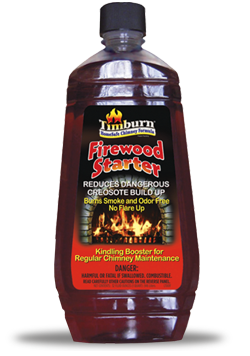 A few ounces of Timburn regular chimney maintenance formula will wick into any dry combustible kindling or tinder to produce a roaring fire in minutes while it reduces dangerous chimney deposits. Only 1 to 3 ounces are needed to start nearly any wood fire making the 32 ounce bottle a great value. Timburn, when used with the Kindl-Stone, produces a high, hot, flame for 8 to 10 minutes using only 1.25 ounces of fluid.